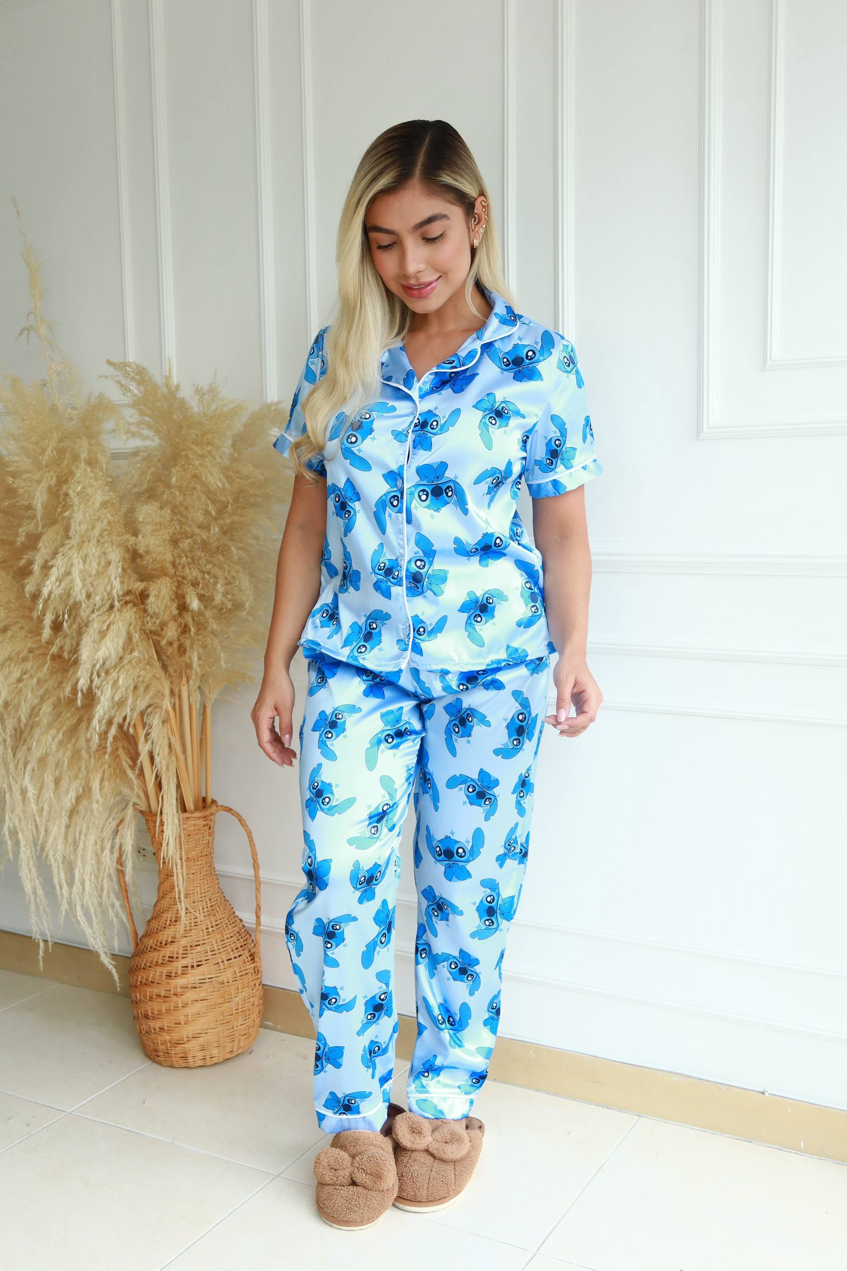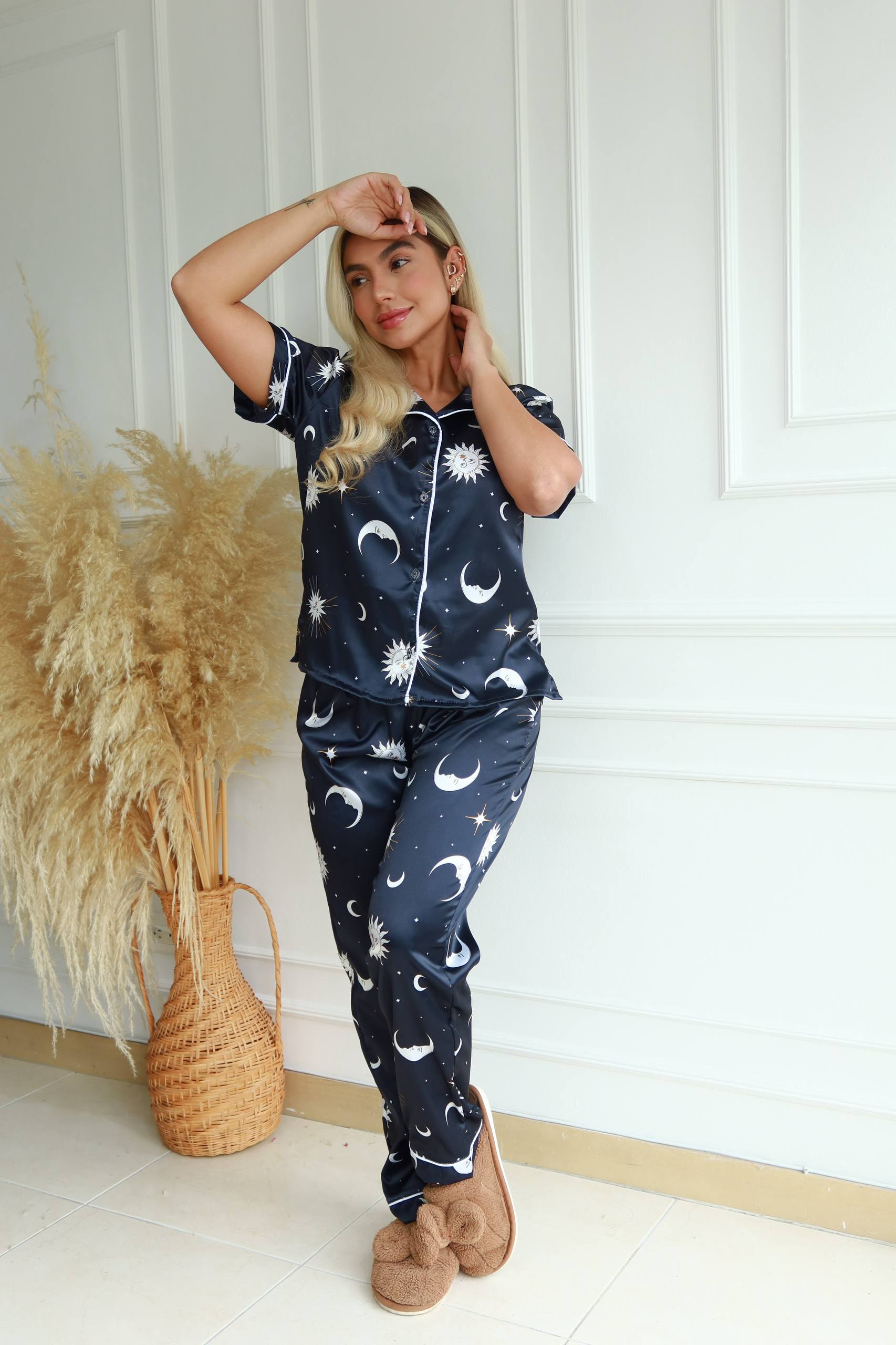 Marcela Peñalosa Noviembre 2025Comprador VerificadoDemasiado fresco para ser satínNice Product. I'm happy with my La tela me sorprendió: fría, suave y con un brillo muy lindo. La camisa cae perfecta y el pantalón se siente ligero, casi como si no lo tuviera. Pero lo mejor es cómo me ayuda a relajarme. Cuando llego con la mente cargada, este set me baja la tensión al instante..